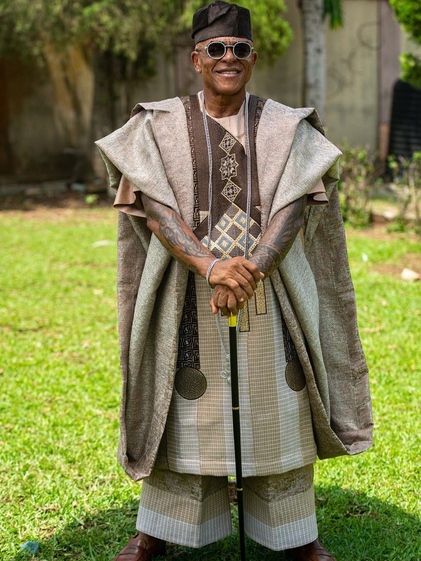 Among the most talked-about attendees is Farooq Oreagba—famously dubbed “King of Steeze.” After his viral appearance in 2024, he returned this year in regal style: a brown aso‑oke agbada and sokoto by Rhobes Official, complete with a silver Cuban link chain, statement rings, and a golden staff topped with a lion’s head . His confident pose—with reins in one hand and cigar in the other—reinforces his iconic status in merging cultural pride with personal flair .