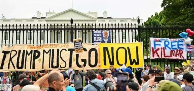 Protesters Flood White House Grounds, Demand Removal of Trump from Office